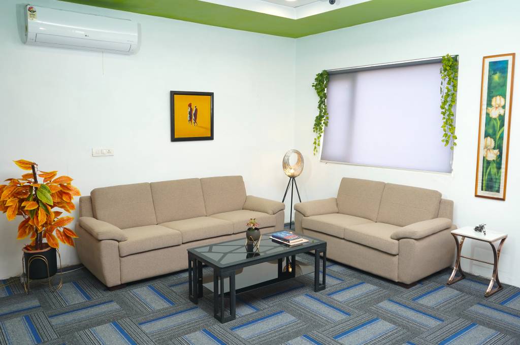 Sharp Lines Sweeping Curves, Comfort & Luxury ensured every detail to make perfect sofa for a soft and inviting statement in your office.